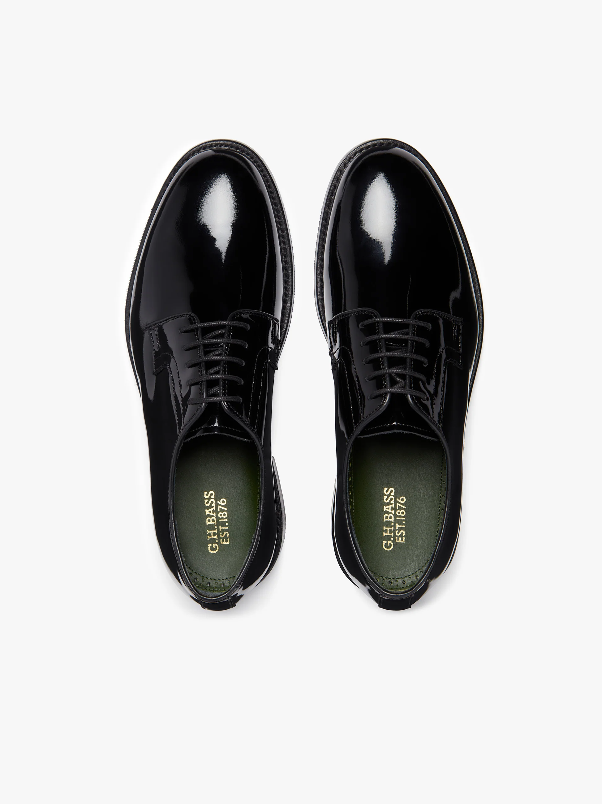 The Monogram Patent Derby reinvents traditional smart and formal footwear with a contemporary twist, showcasing a sleek high-shine black patent leather finish. As part of our Monogram range, originally designed in 1939, the Monogram Patent Derby features gold branding on an ultra-soft green insock. Lined with the most luxurious and supple leathers, they offer the wearer breathability and comfort. Completed with the signature antique gold outsole plate, its a subtle mark of our dedication to quality. Made to be worn all year round, these are high-quality lace-up shoes designed to last for years through strengthened stitching, rubber heel taps, and cushioned insoles. The perfect dress shoe to make a distinguished statement, adding the perfect finish to wedding tailoring and formal suiting.