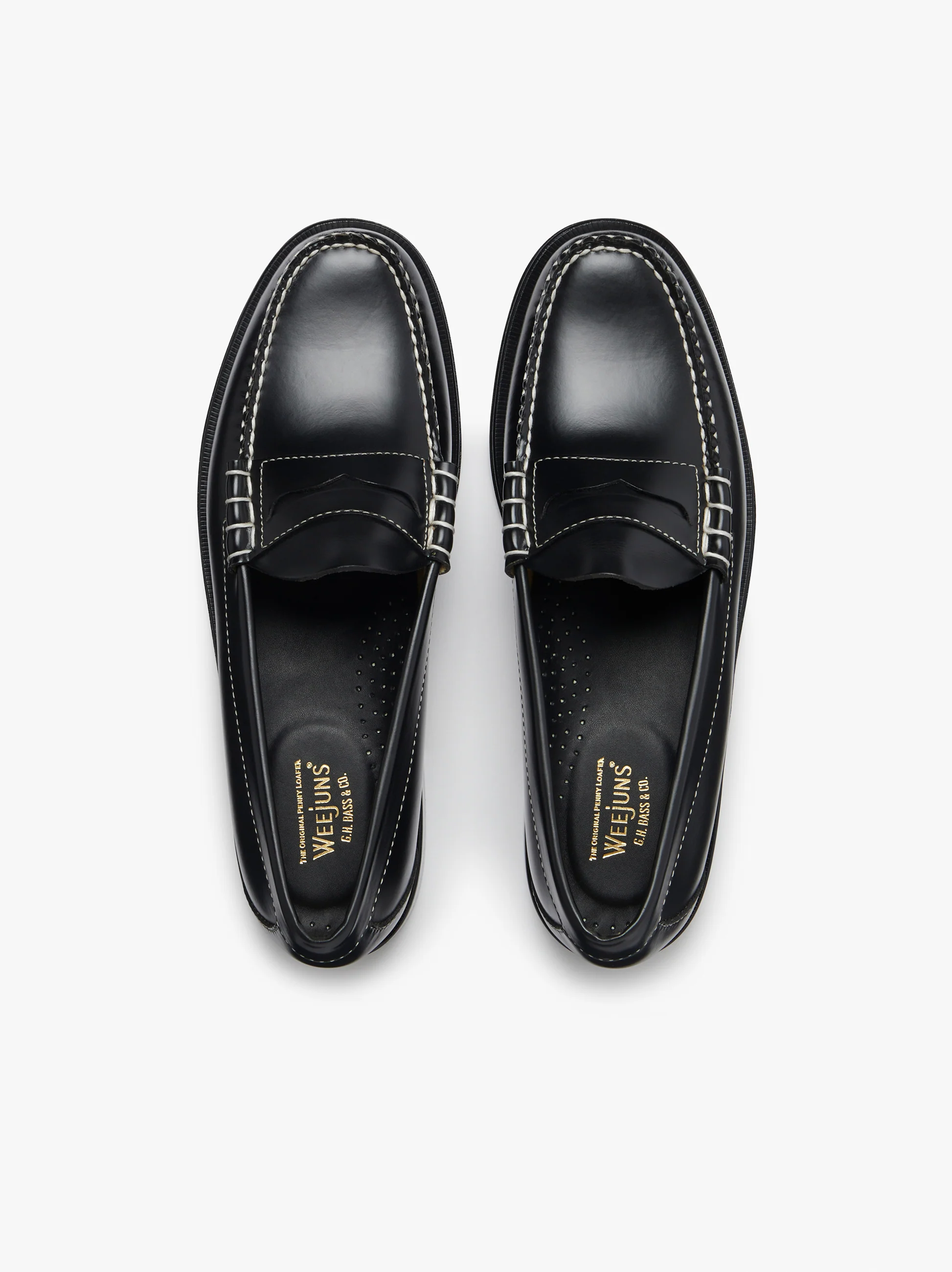 An icon, refined. The men’s Weejuns Larson Penny Loafer returns in black polished leather, defined by hand-stitched waxed thread that creates a sharp contrast against the classic silhouette. The breathable, unlined interior and cushioned insole deliver all-day comfort, making these loafers ideal for busy days on your feet or long evening events. Set on a flexible, hand-polished leather sole with a protective rubber heel tap for added durability, this loafer brings a smart finish to both event and casual wear.