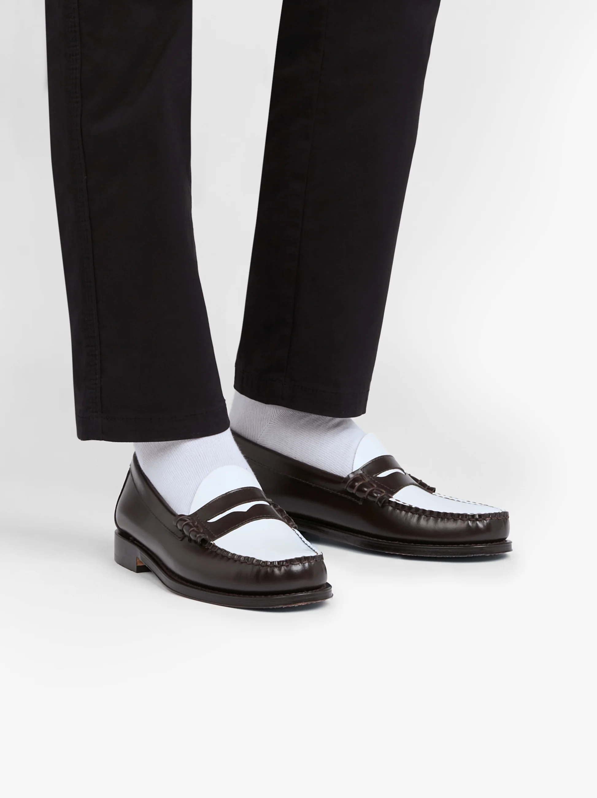 This Larson loafer is a timeless design. Polished brown leather with a contrasting white vamp. This playful yet sophisticated loafer is hand-stitched in El Salvador using original construction techniques from 1936. This shoe is made to stand out and impress, perfect for adding flair to the occasion wardrobe.